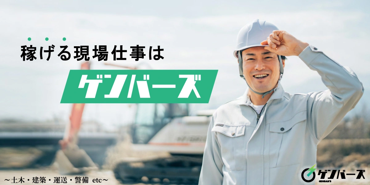 ゲンバーズは「現場」「手に職」「稼げる」がコンセプトの現場系求人情報サイトです。エリア別はもちろん、建設・建築・土木・運輸・警備など様々な業種から、手に職がつく、稼げる、自分のキャリアを作っていける、そんな求人情報を探せます。力仕事が向いている、土方をやったことがある、経験や資格を活かして転職したい方や新たな道へチャレンジしたい方、中高年でここからリスタートの方など、人生を前向きに生きるあなたにより良い暮らしと生活を提案します。 是非ゲンバーズでお仕事探しをしてみてください。